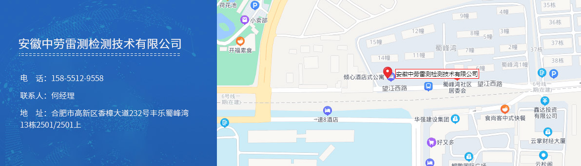 安徽中勞雷測檢測技術有限公司是一家主要從事防雷裝置檢測、防雷工程施工、防雷產品銷售及安裝,雷擊風險評估等工作的公司。 為提供周到的技術服務,公司先后置辦了200多平方米的辦公場所;配備了防雷接地電阻測試儀、防雷元件測試儀、土壤電阻率測試儀、環路電阻測試儀等一批國內外先進的檢測設備。 公司營業范圍:建筑工程防雷檢測服務;防雷裝置檢測;防雷產品質量檢測;雷擊風險評估分析;雷電防護可行性分析;防雷產品的...