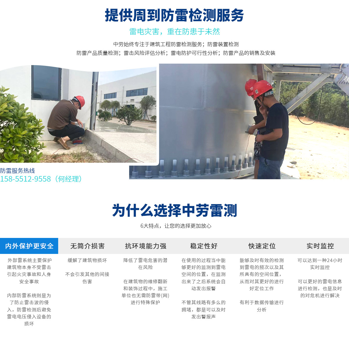 安徽中勞雷測檢測技術有限公司是一家主要從事防雷裝置檢測、防雷工程施工、防雷產品銷售及安裝,雷擊風險評估等工作的公司。 為提供周到的技術服務,公司先后置辦了200多平方米的辦公場所;配備了防雷接地電阻測試儀、防雷元件測試儀、土壤電阻率測試儀、環路電阻測試儀等一批國內外先進的檢測設備。 公司營業范圍:建筑工程防雷檢測服務;防雷裝置檢測;防雷產品質量檢測;雷擊風險評估分析;雷電防護可行性分析;防雷產品的...